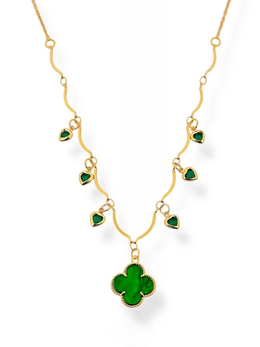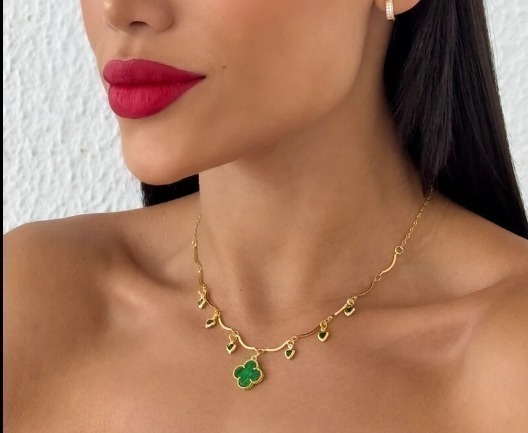 Colar inspirado na influenciadora Virginia Fonseca com coração e trevo Folheado a Ouro 18k